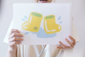 長ぐつ!水たまり!アサガオ!雨!」