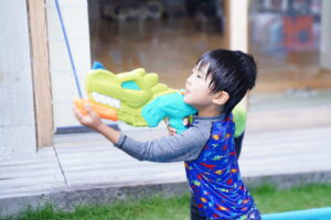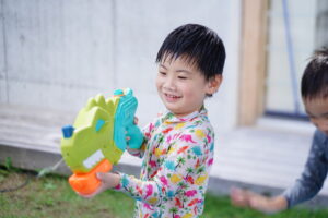 水鉄砲でお壁にたくさん発射したり!