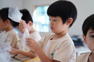 まとまってきた子から具材を入れていくよ!
