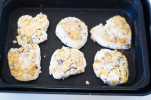 今日はコーンをハンバーグに混ぜて