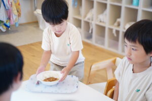 お当番さんが盛りつけしてくれてる間