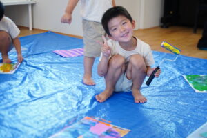 「白い画用紙に自由におえかきしていいよ~」と伝えると、