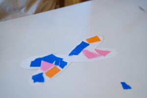 折り紙をちぎって白色の羽を