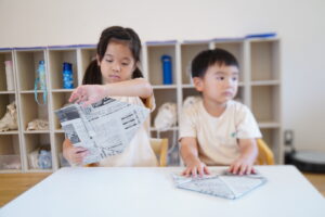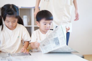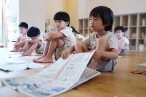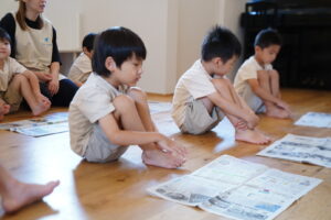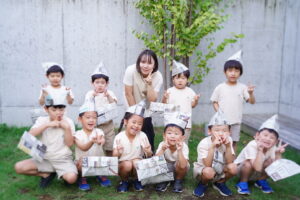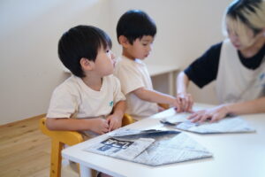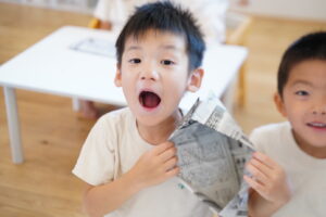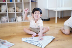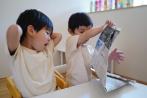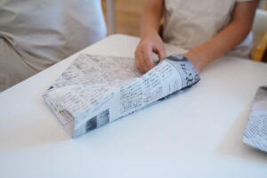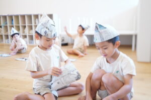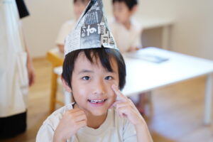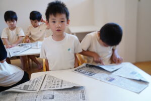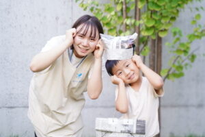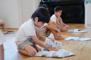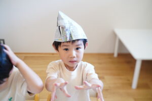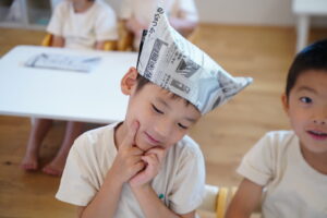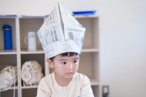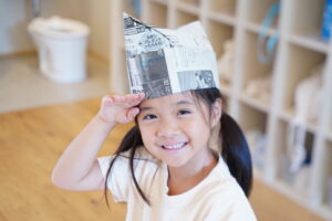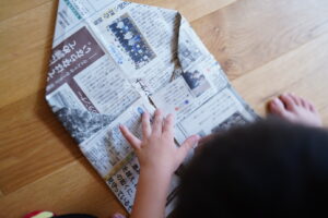 今日は新聞紙を使ってぼうしをつくっていくよ~