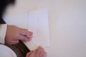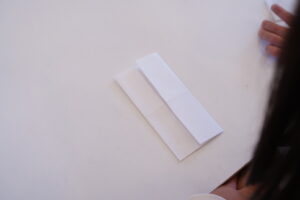 その線に向かって細長い四角を折るよ!