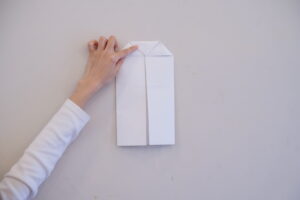 少し体からでるように三角に折るよ!