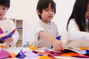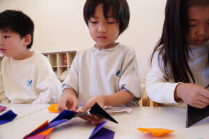 小さい子たちも折り方をしっかり見ていたので