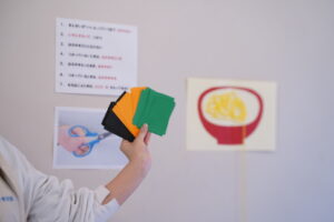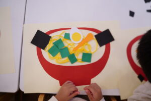 ラーメンの具材になる3色の画用紙を持ってきたよ~!