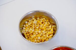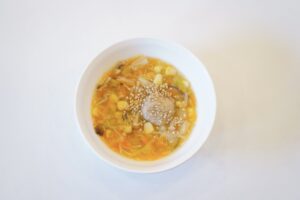 白菜、にんじん、コーン、しいたけ、えのき、鶏がらスープ、醬油