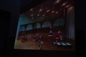 スクリーンに「サンタようちえん」の