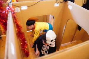 お部屋の真ん中には、大きなダンボール迷路も?!