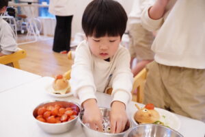 中には、トマトだけバーガーを作っている子も!