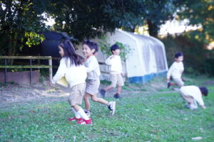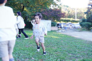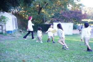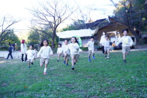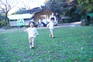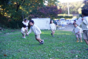 滑り台を楽しんだ後は、みんなで鬼ごっこ!