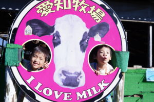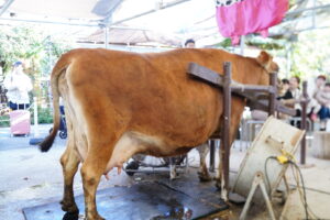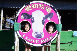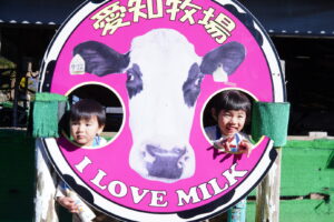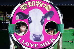 今からみんなはこの牛さんの乳しぼりをするよ~🍼