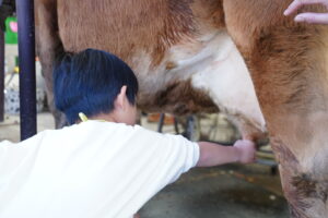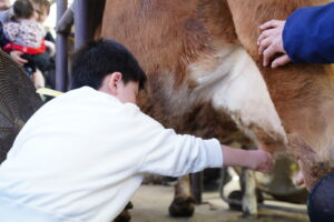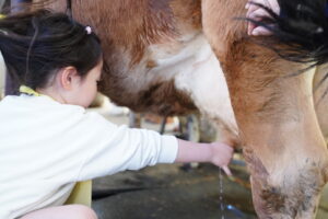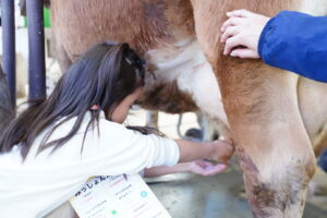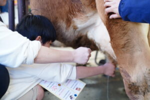乳しぼりのやり方を教えてくれたので