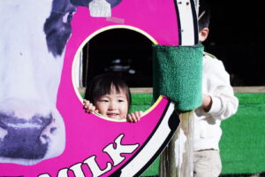 乳しぼりのあとは顔はめがあったので