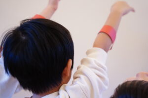 今日は色のバンドを付けて右、左を覚えていくよ!