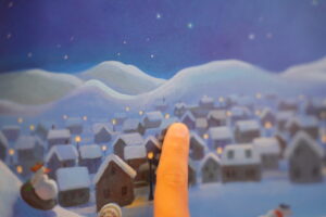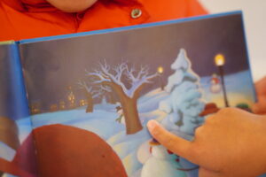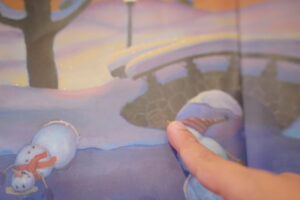 1冊目の「ゆきだるまはよるがすき」のえほんの中に