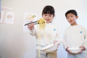 お箸だと、つるつるでつかみにくいよね~🌀