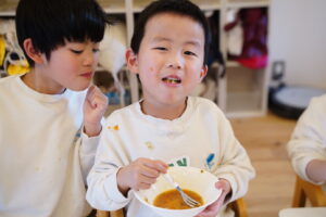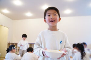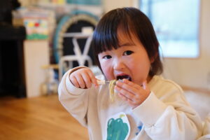 最後のお仕事は、「いただきます」のあいさつだね!