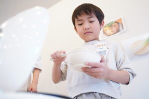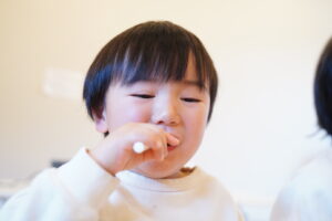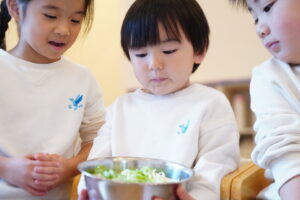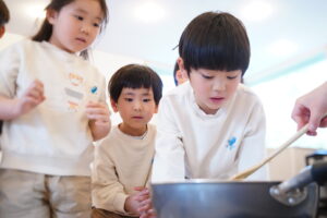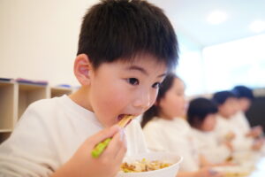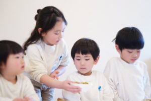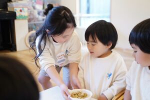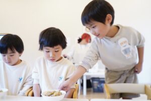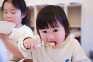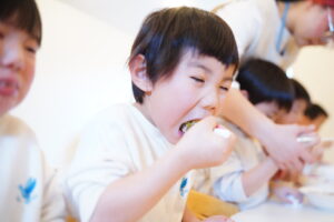 子どもたちは、どうやったらたくさん口に運べるかな?など