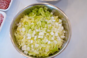 ②白菜を炒める(小さめの角切り)