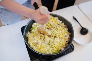 ③ねぎを炒める(小口切り)