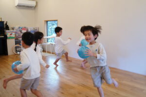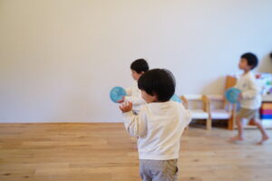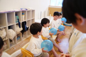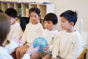 お友だちにボールを渡すとき、もらう時