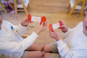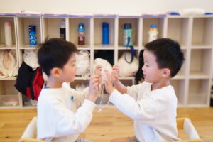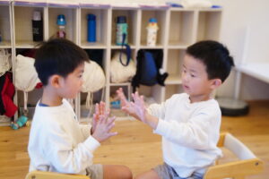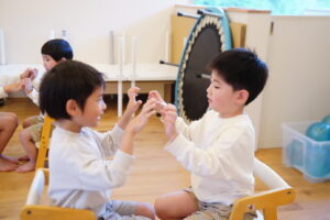お友だちと手を合わせます!