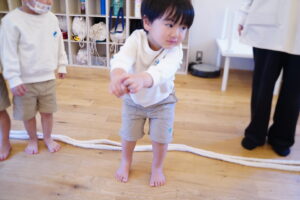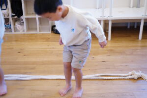 最後は浮いている縄をとんでみよう!