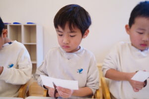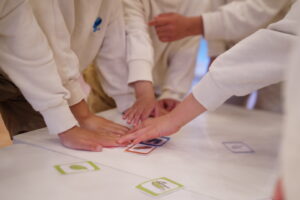 今日は、みんなで協力して「かるた」を切っていくよ!