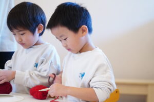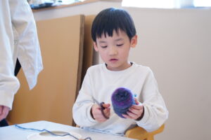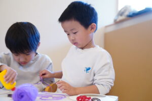 👦🏻「毛糸をくるくる巻いてみるよ~」
