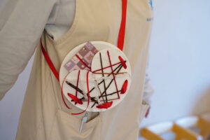 〇紙皿と♡紙皿の穴をぴったり合わせて、