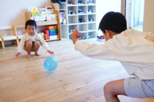 ボールをころがしたり、なげた後は