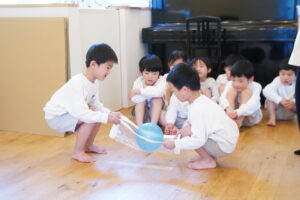年中さんにはボールの準備をお手伝いしてもらうよ!
