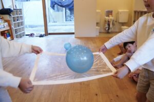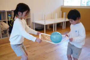 ボールを色々な方法でお友だちと運んでいくよ!