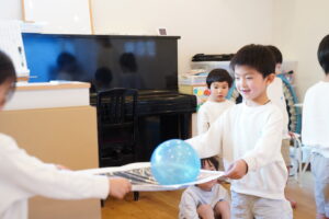 お友だちと協力してボールを運ぶよ!