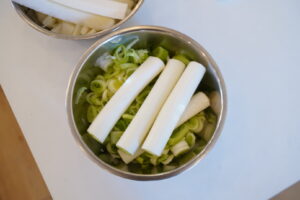 年長さんは、包丁を使って大根とねぎを切っていくよ~!