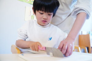 年長さんチームが、包丁を使っていくんだけど、
