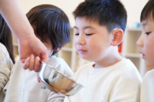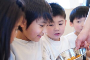 👦🏻「あ!年長さんが切ってくれた大根だ!」