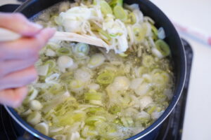 みんなが小さくしてくれたお野菜をお鍋に入れて、