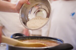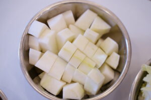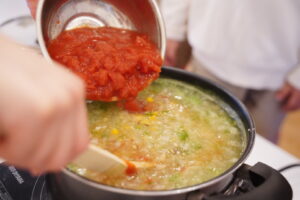 みんなが小さくしてくれたお野菜を煮込んでいくよ~!