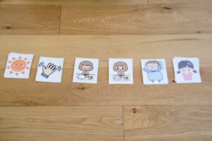 カードが揃ったら手をあげてあいさつを答えよう🙌🏻