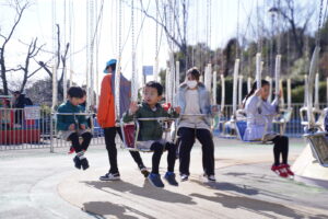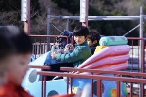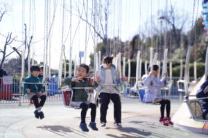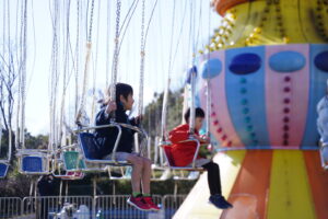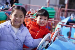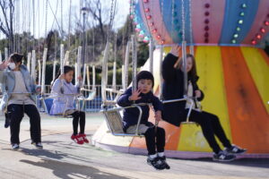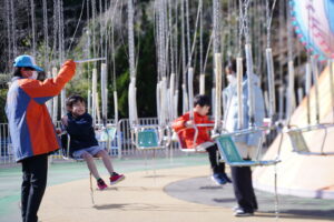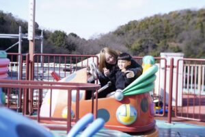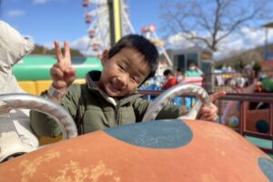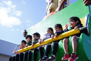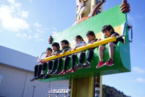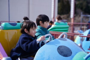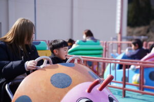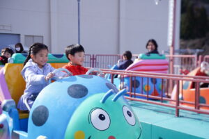 かわいいてんとう虫の乗り物に乗る子どもたち!