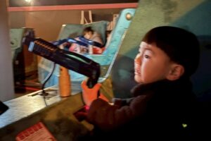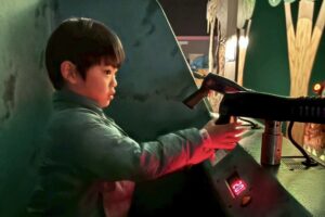 乗り物に乗って、暗闇の中を進んでいくと・・・