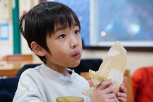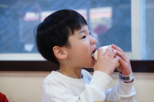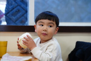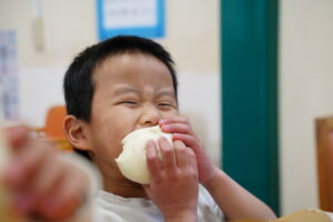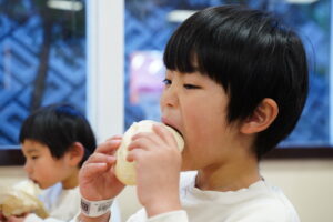あつあつの肉まんに、ガブっとかぶりつく子どもたち💖