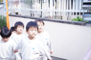 友だちと声をかけあいながら歩き、