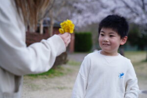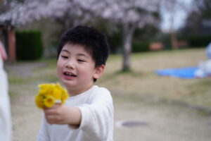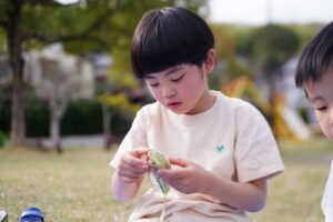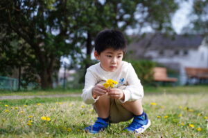 公園に咲いているお花を集める子どもたち🌼