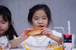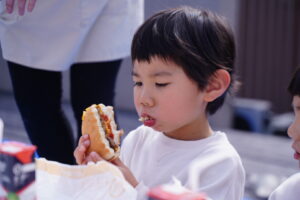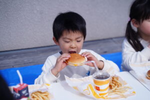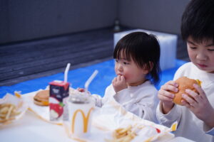 子どもたちはマックを屋上で食べれることに